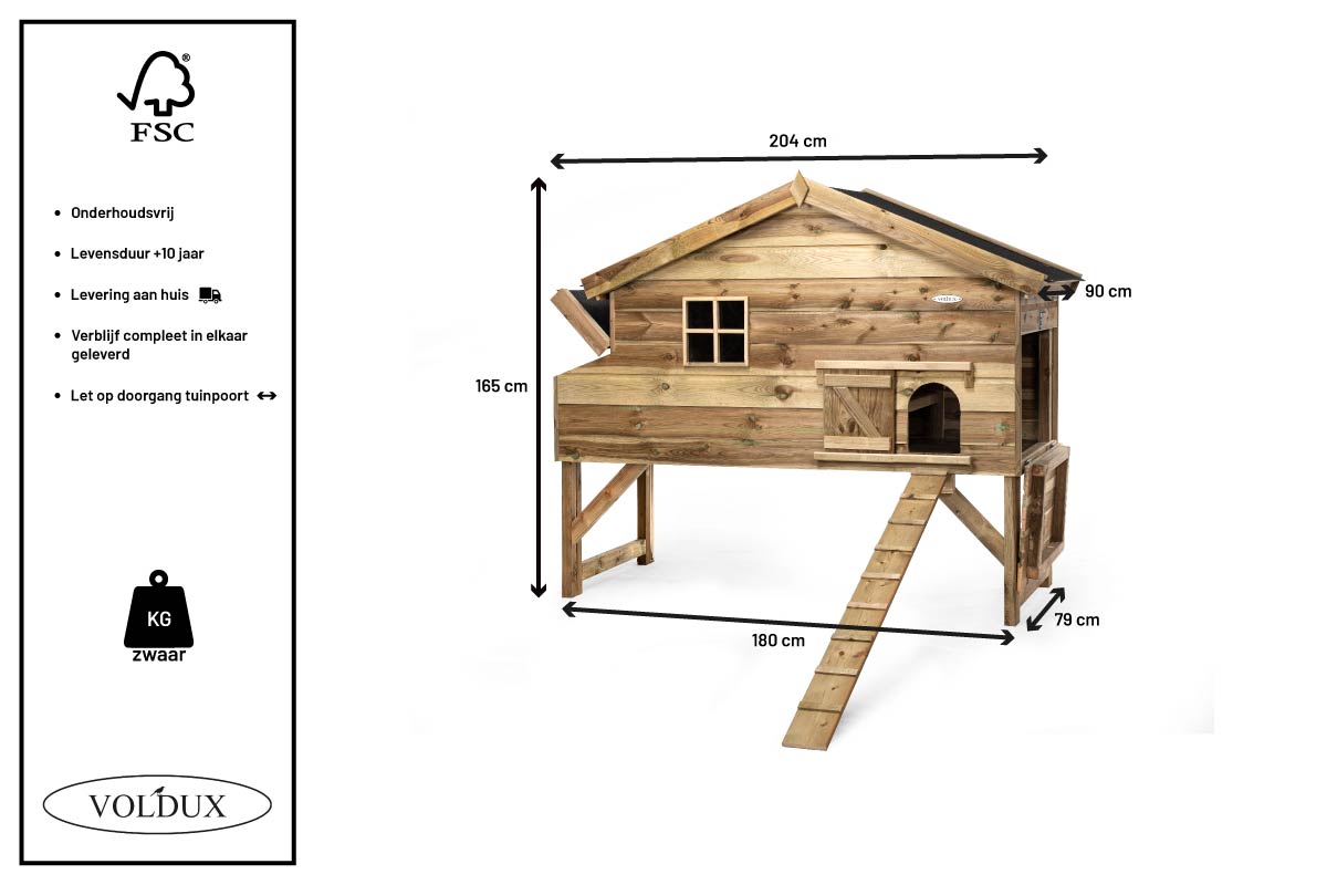 | Buitenmaat incl. dak (B x D x H) | 204 x 90 x 165 cm Incl. onderstel |